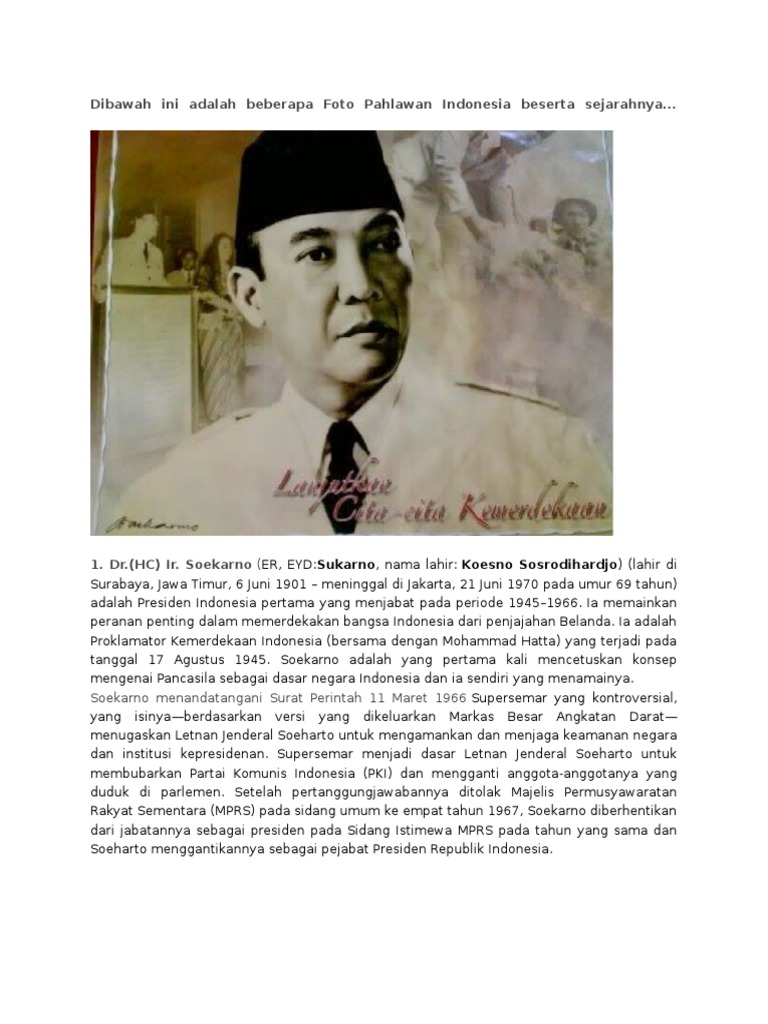 Are you searching for pahlawan indonesia png images or vector? Koesno sosrodihardjo) (lahir di surabaya, jawa timur, 6 juni 1901. Is the capital of east java province in indonesiasurabaya is the second largest city in indonesia with a population of over 3 million withi. Beliau meninggal dunia karena kecelakaan helikopter di riung gunung kemudian beliau dimakamkan di tmp kalibata, jakarta. Dibawah ini adalah beberapa foto pahlawan indonesia beserta sejarahnya.
